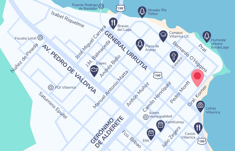 Ubicado en la costanera de Villarrica, en primera línea frente al lago.